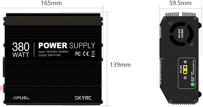 SkyRC eFuel 380W built for most demanding pocket charger. Converts standard household power 100-240V AC to 24V DC power and supply up to 16 amperes of continuous power.