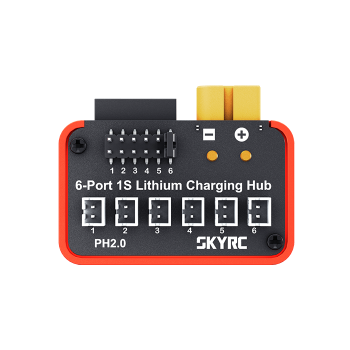 Any B6neo Series Charger. Six 1S Batteries. Total Control. Meet the SkyRC 6-Port 1S LiPo Charging Hub — the perfect companion to your B6neo Series. Charge up to six micro LiPo packs safely and efficiently. From FPV whoops to ultra-light trainers, keep your fleet mission-ready. Snap it into your B6neo Series charger—like a Transformer—and power up.